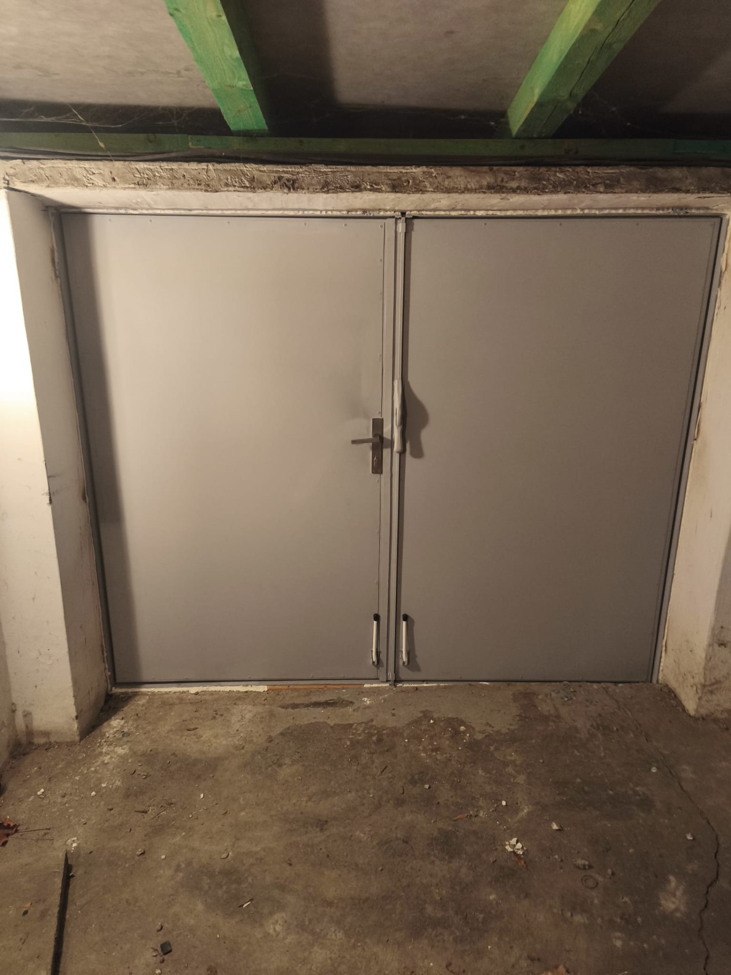 Vrata jsou tvořeny širokým praporkovým jeklem s oplechováním 1mm plechu nakřiveného do kříže. Mezi plechy je sevřena zateplovací vata .Plechy jsou lepeny silikonem pro těsnost a nýty přivrtány do praporkového jeklu .